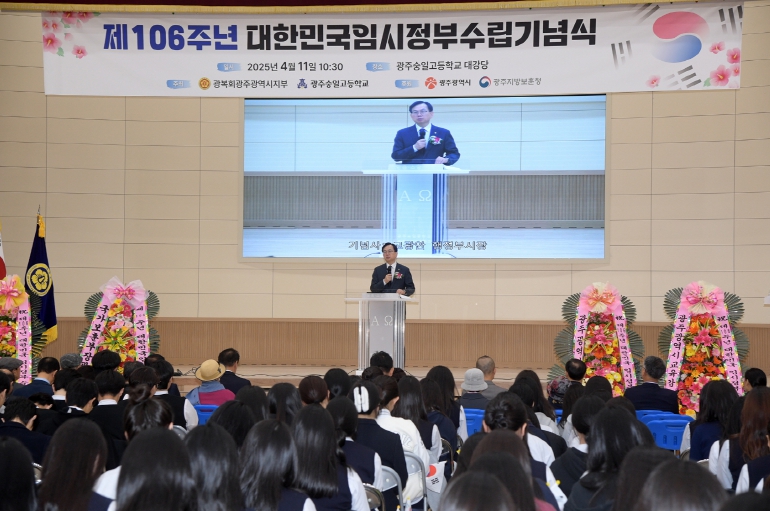 기념식은 국민의례, 대한민국 임시정부 수립 약사보고, 기념사, 대한민국 임시헌장 선포문 발표, 만세삼창 등의 순으로 진행됐다. 이어 숭일고 학생들을 대상으로 ‘3·1운동과 임시정부, 그리고 호남의 독립운동’을 주제로 역사특강이 열려 임시정부 수립을 더욱 뜻깊게 했다.
