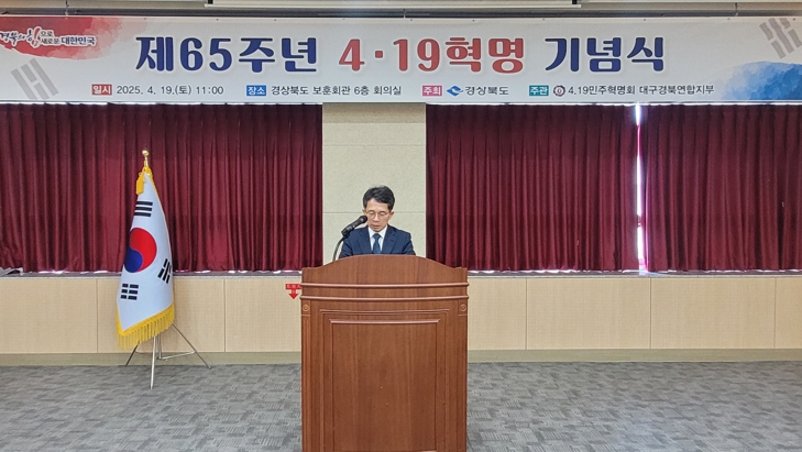 제65주년 4.19혁명 기념식은 4.19민주혁명회 대구경북연합지부가 주관하고, 유정근 경상북도 복지건강국장을 비롯한 4·19단체회원과 유가족, 경북도․대구시 보훈단체장 등 70여 명이 참석했다.