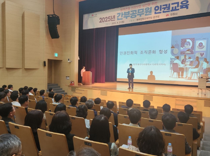 시는 21일 한국전통문화전당 공연장에서 윤동욱 전주시 부시장을 비롯한 전주시 5급 이상 간부 공무원 160여 명을 대상으로 사례 중심의 맞춤형 인권교육을 실시했다.