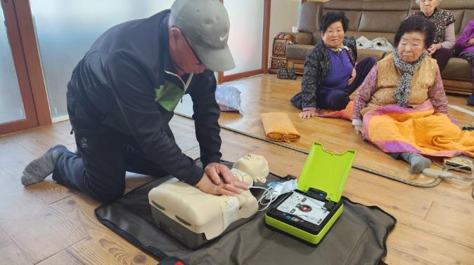 ![]() 경로당에서 진행된 자동심장충격기 사용 방법 교육 모습 |