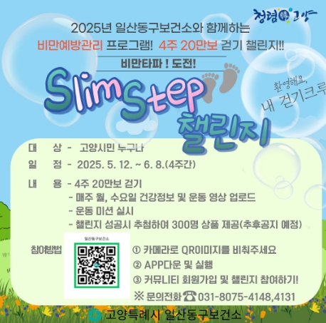 일산동구보건소는 이번 챌린지가 지역 주민들의 건강한 생활습관 형성과 비만 예방에 기여할 수 있도록 다양한 지원을 아끼지 않을 예정이다.