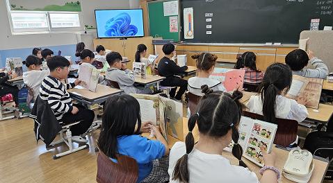 ![]() 해남서초등학교에서 글로컬독서인문학교 ‘김대중 독서교실’ 프로그램을 운영하고 있다. |