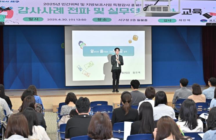 이날 교육에는 보조금 실무 담당자 등 60여명이 참석했으며 위탁기관의 보조금 목적 외 사용, 승인 절차 없이 예산 전용 등 현장에서 자주 발생하는 지적 사례 소개와 함께 실질적인 대응 방안을 안내했다.
