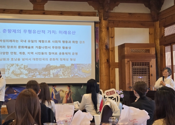 지난 3일 남원 예촌 사랑마루에서 진행된 ‘춘향 앰버서더 in 남원’ 행사에서는 춘향 14명과 올해 선발된 2025 당대 춘향 9명까지 참여, 김정미 퍼실리데이터, 함한희 (사)무형문화연구원장의 강의를 통해 남원자산에 대해 알아보고 춘향 앰버서더로서의 역할 등을 재정립하는 등 역대 춘향들의 진정성 있는 홍보활동 방향을 고민하는 의미 있는 자리를 가졌다.