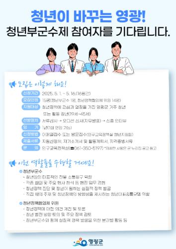 ![]() "청년이 미래다”… 영광군, ‘청년부군수’ 공개 모집 |