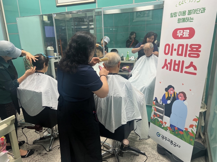 광주교통공사(사장 조익문)는 13일 광산구 도산역에서 힐링미용봉사단과 함께‘지하철 무료 이·미용소’ 를 열고 이발 등 머리손질 서비스 운영을 개시했다고 밝혔다.