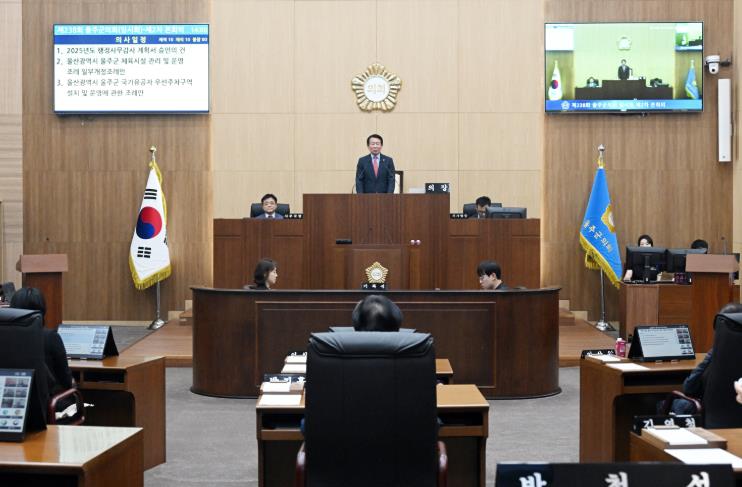 한편, 이날 본회의에서는 행정사무감사 계획서와 함께 △울주군 체육시설 관리 및 운영 조례 일부개정조례안(한성환 의원) △국가유공자 우선주차구역 설치 및 운영에 관한 조례안(김영철 의원) △치유농업 육성 및 지원에 관한 조례안(정우식·노미경 의원) △울주시네마 설치 및 운영 조례 일부개정조례안 등 모두 7건의 안건이 처리됐다.