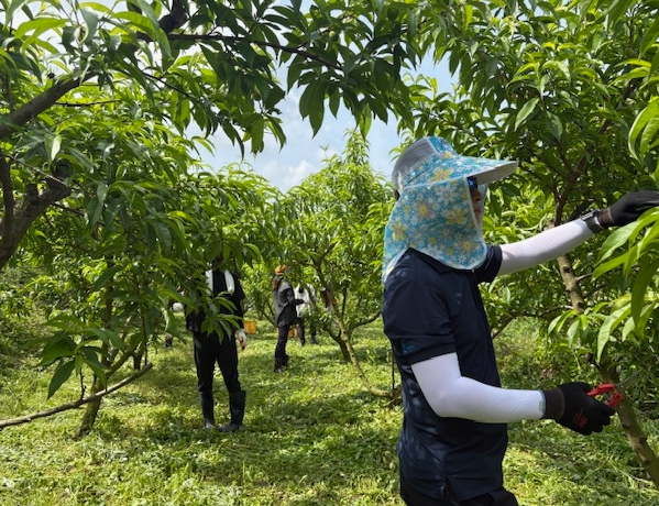 복숭아 적과는 품질 향상에 중요한 작업이나, 인력 부족 시기에는 농가에 큰 부담이 된다.