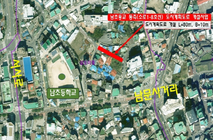 ![]() 남초등학교 동측(소로1-8호선) 도시계획도로 개설사업 위치도 |