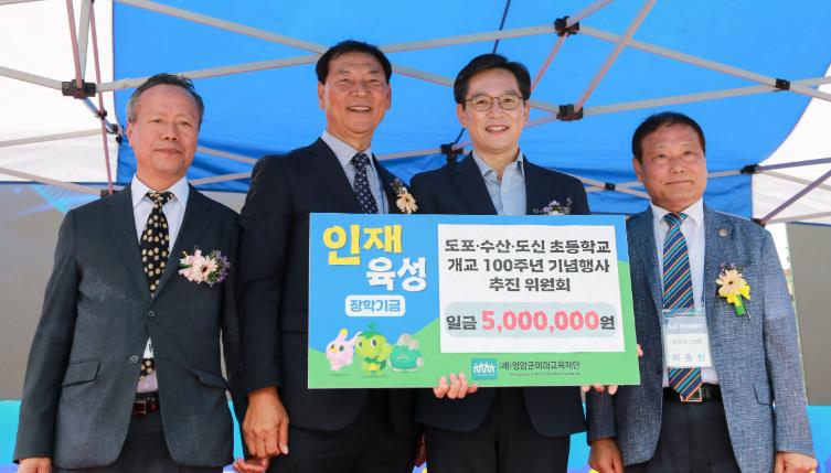 ![]() 영암 도포·수산·도신초 100주년 기념행사 추진위, 영암군에 인재육성기금 500만원 전달 |