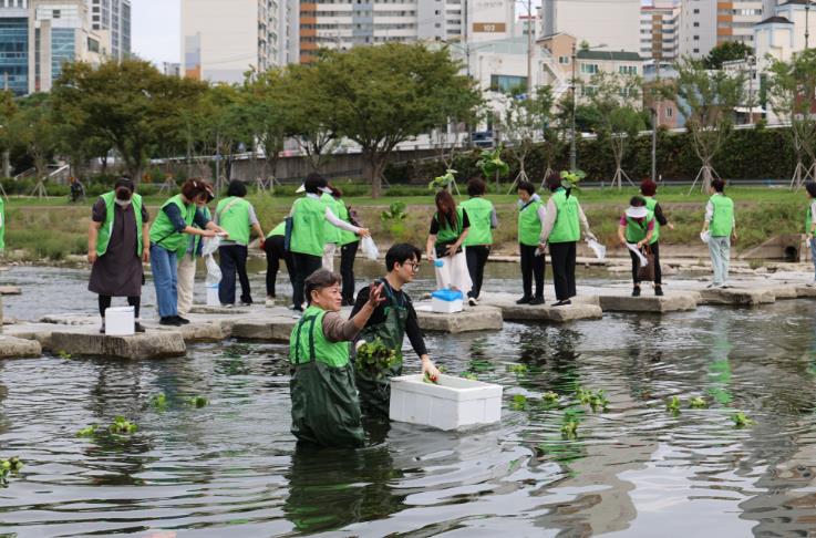 이번 행사는 주민들의 도심 속 생태공간인 신천 산책로를 중심으로 ▲깨끗한 하천변 유지를 위한 쓰레기 집중 수거 ▲수질 개선을 위한 미꾸라지 방사 및 부레옥잠 식재 ▲일상 속 탄소중립 실천 캠페인 전개 등으로 구성돼 깨끗한 환경 조성과 생태계 보전에 이바지하고자 했다.