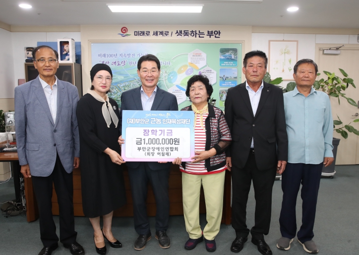 장학금을 기탁받은 권익현 부안군근농인재육성재단 이사장은 “부안군 장애인연합회의 뜻깊은 장학금 기부에 감사드리며, 지역청년들과 더불어 장애인들이 지역사회의 일원으로 성공적으로 자리잡을 수 있도록 인재육성 차원에서도 힘을 기울이겠다”고 화답했다.