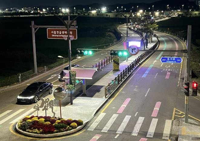 ![]() 안전 펜스 교체 및 야간 경관 조명 설치가 완료된 갯골생태공원 진입로 전경 |