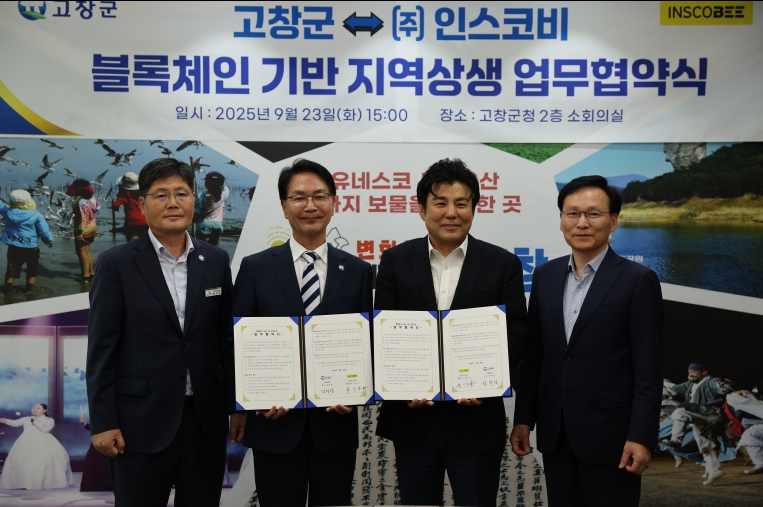 ![]() 고창군-(주)인스코비, 블록체인·핀테크 기반 지역상생 협약 체결 |