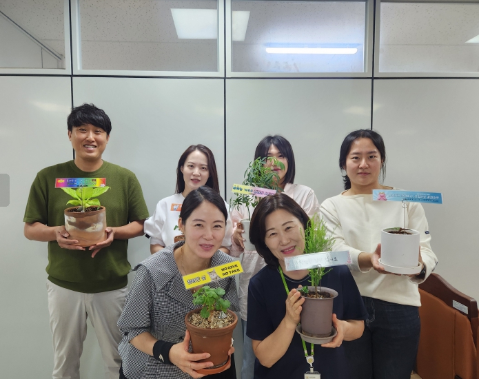 직원들은 개인 화분에 직접 제작한 청렴 문구 팻말을 꽂아 사무실에 비치하며, 생활 속 청렴 실천을 다짐했다.