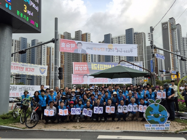 ![]() 포항시는 지난 22일 ‘세계 차 없는 날’을 맞아 대잠사거리 일원에서 캠페인을 진행했다. |
