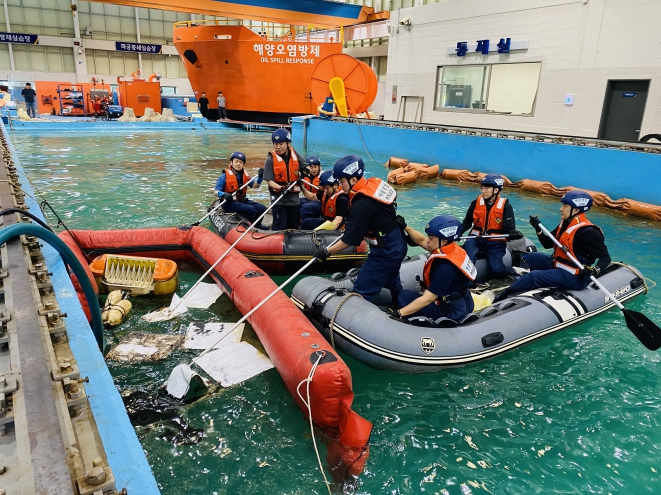 교육은 대규모 해양오염사고에 대비해 구축된 종합실습 시설에서 진행됐다. 참가자들은 유출유 방제 기자재와 해상화학사고 대응 자재를 직접 다루며 실습을 수행했으며, 긴급 방제에 필요한 초동조치 절차를 익혔다.