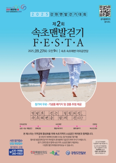 걷기 행사가 끝난 뒤에는 속초해변 상설무대에서 버스킹 공연과 경품 추첨이 이어진다. 풍성한 선물과 다채로운 무대 공연은 참가자들에게 잊지 못할 추억을 선사할 것으로 기대된다.