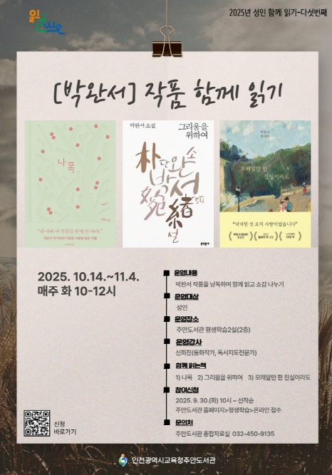 참여 신청은 9월 30일 오전 10시부터 주안도서관 누리집에서 가능하며, 자세한 사항은 주안도서관 누리집또는 종합자료실로 문의하면 된다.