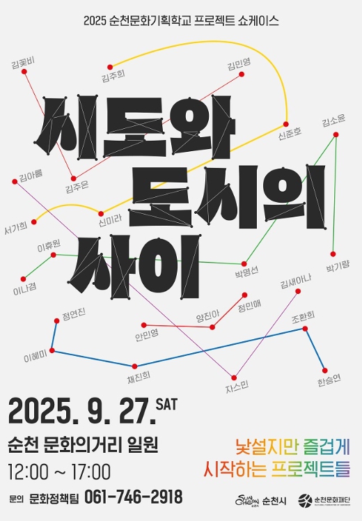 한편, ‘시도와 도시의 사이’는 순천문화기획학교의 연계 과정으로 수강생들의 실전 기획역량을 강화하고 순천 청년문화인력의 지속가능한 활동기반을 마련하기 위해 기획됐다.