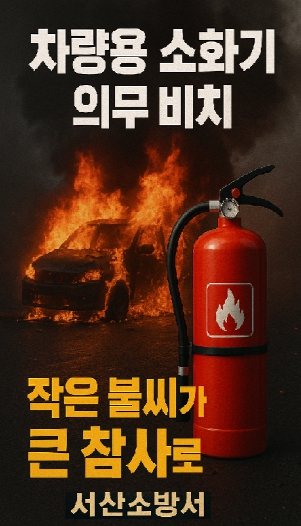 ![]() 서산소방서, 차량화재 초기 대응 위해 ‘차량용 소화기 비치’ 적극 당부 |