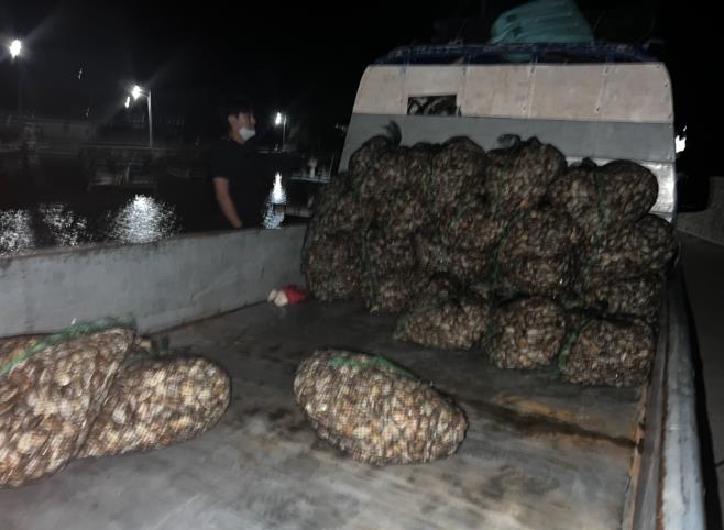 ![]() 차량에 적재된 바지락을 채증한 사진(약 400kg) |