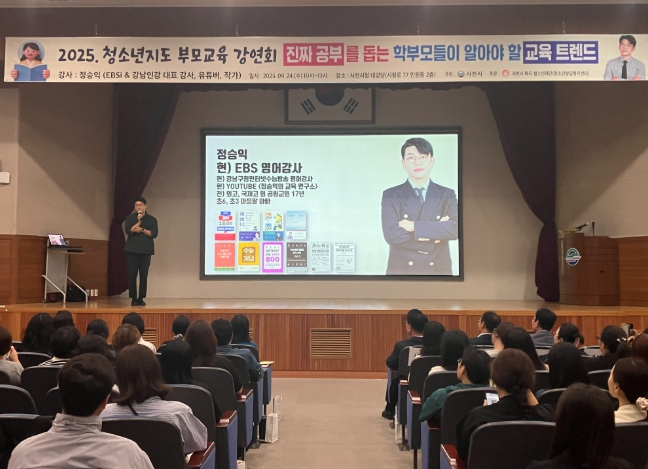 이번 강연은 EBS 영어 대표 일타강사로 유명한 정승익 강사를 초청해 진행됐으며, ‘진짜 공부를 돕는 학부모들이 알아야 할 교육 트렌드’라는 주제로 학부모들의 큰 관심을 끌었다.
