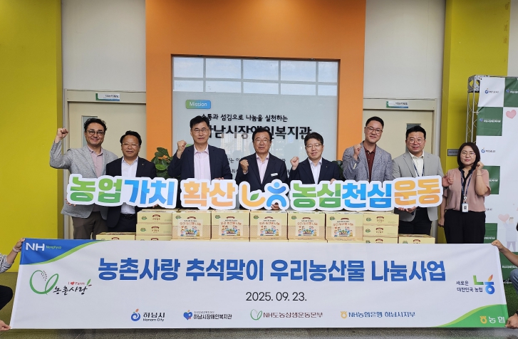 농협중앙회 하남시지부 이석표 지부장은 “추석을 앞두고 혼자 균형 잡힌 식사를 하기 어려운 취약계층과 장애인들에게 작지만 따뜻한 정을 나눌 수 있어 매우 기쁘다”며, “앞으로도 지역사회의 소외계층을 위한 다양한 지원과 나눔 활동을 이어가겠다”고 말했다.