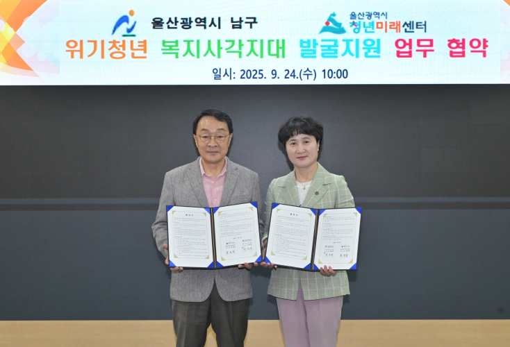 ![]() 남구-울산청년미래센터, 위기 청년복지사각지대 발굴·지원 업무협약 체결 |