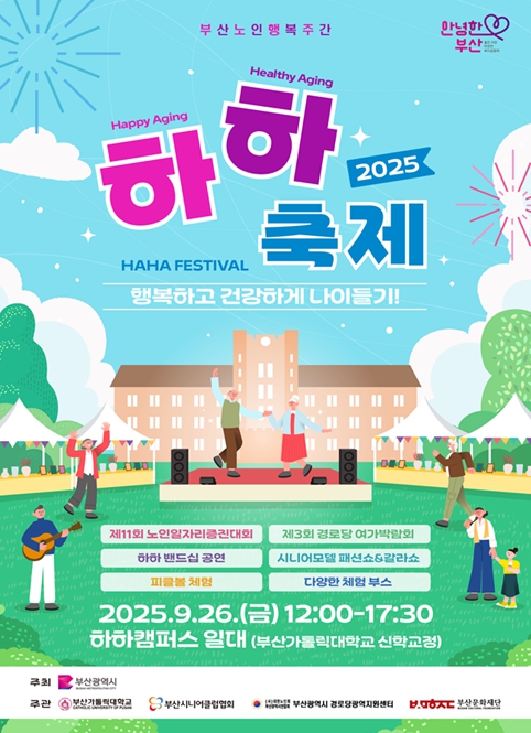 이번 축제는 시가 올해 처음 운영하는 ‘제1회 부산노인 행복주간(9.25~10.1)’의 핵심 행사로 마련돼, 하하캠퍼스를 널리 알리고 어르신들에게 다채로운 볼거리와 즐길 거리를 제공하는 자리다.