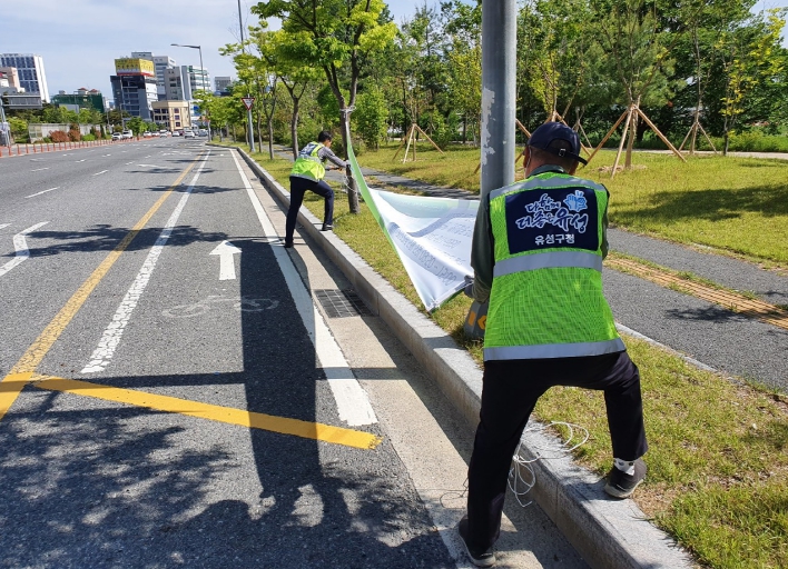 정용래 구청장은 “연휴 기간에도 불법 현수막을 상시 정비해 쾌적하고 안전한 명절을 보낼 수 있게 하겠다”라며 “불법 광고물 근절을 위해 지속적인 관리·감독과 예방 활동을 강화하겠다”라고 말했다.
