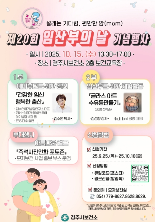 참여 신청은 9월 25일부터 10월 10일까지 2주간 QR 코드를 통해 가능하며, 경주시 임산부뿐 아니라 가족, 친구 등 누구나 함께 참여할 수 있다.
