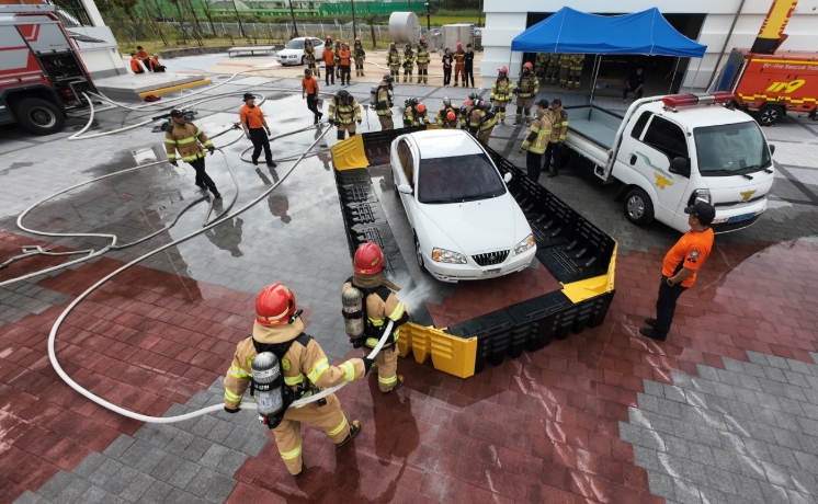 한 훈련 참가자는 “전기차 화재는 일반 차량 화재와 달리 배터리 폭발 위험이 있어 긴장감이 컸지만 반복 훈련을 통해 대응 절차를 몸에 익힘으로써 실제 상황에서도 자신감을 가질 수 있었다”라고 말했다.