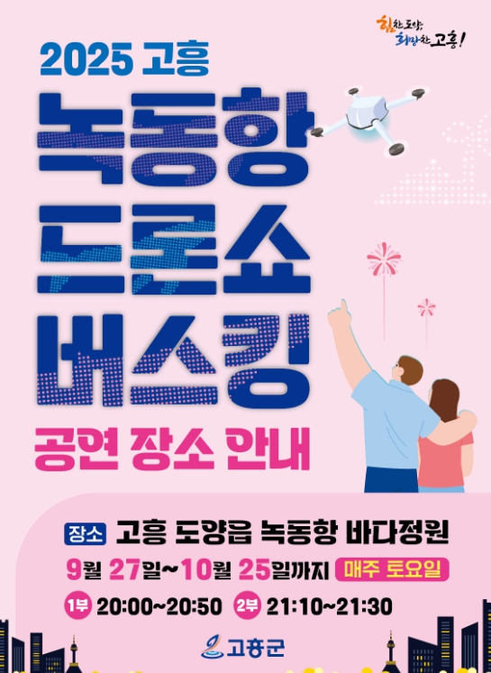 ![]() 녹동항 바다정원에서 9월 27일부터 10월 25일까지 드론쇼 버스킹 공연 |