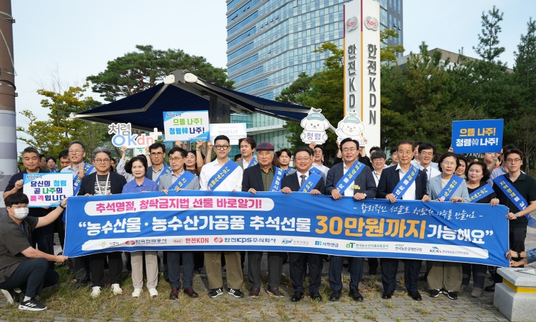 이날 행사에는 윤병태 나주시장을 비롯해 박상형 한전KDN 사장, 송하중 사학연금 이사장 등 기관장과 임직원 100여 명이 함께 참여해 시민들에게 청탁금지법 개정 내용을 알리고 청렴 문화 확산에 뜻을 모았다.