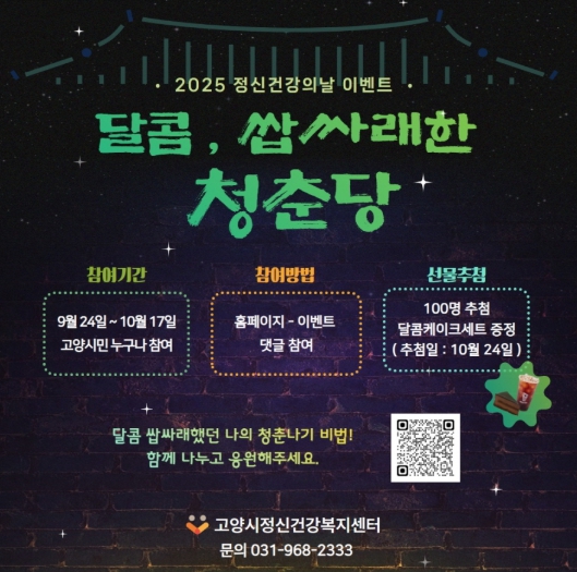 참여 신청은 고양시정신건강복지센터 누리집 내 이벤트 페이지 또는 QR코드를 통해 가능하다. 참여자 중 100명에게 추첨을 통해 기프티콘을 제공할 예정이다.