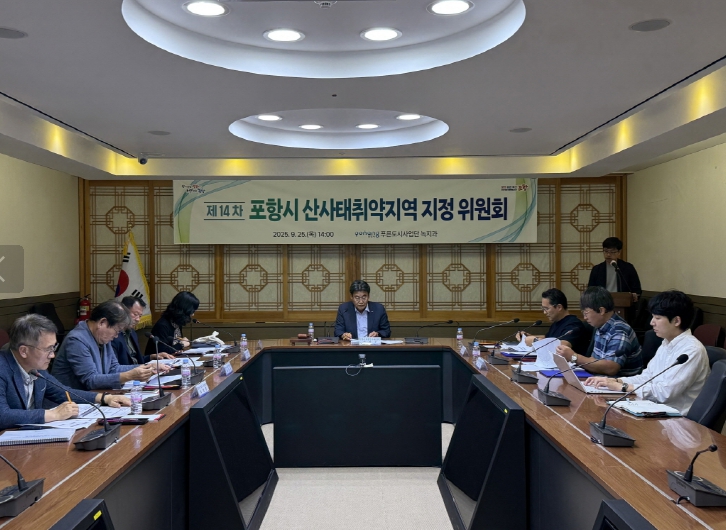 ![]() 포항시가 25일 시청 중회의실에서 산사태취약지역 지정심의 위원회를 개최했다. |