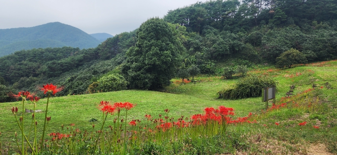 백운산산림박물관, 치유의 숲, 목재문화체험장 등을 두루 품은 힐링 숲, 백운산자연휴양림 곳곳에도 꽃무릇이 붉은 융단처럼 빽빽이 들어차 방문객들의 발길을 끌고 있다.