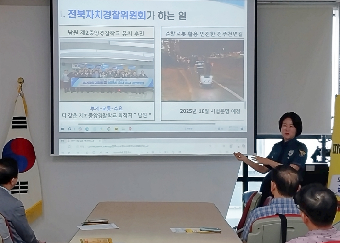 ![]() 전북자치경찰위원회, 어르신 대상 안전‧보이스피싱 찾아가는 맞춤형 교육 |