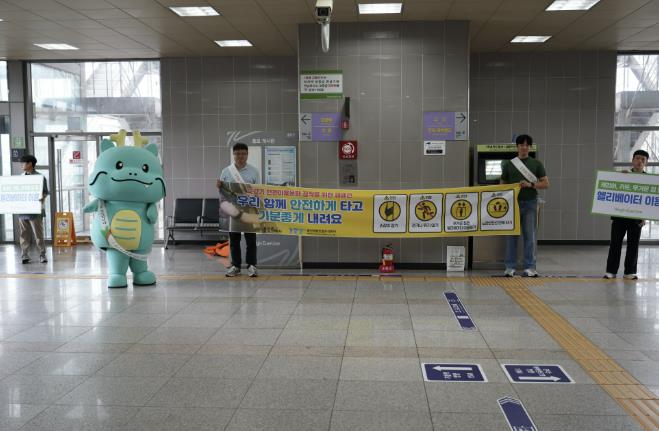 ![]() 용인특례시는 25일 용인중앙시장역에서 에스컬레이터 안전사고 예방 캠페인을 진행했다 |