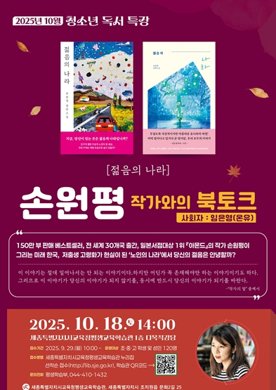 이번 책마당(북콘서트)에서는 손원평 작가의 신작 장편 소설 ‘젊음의 나라’를 중심으로, 매일 남기는 기록이 어떻게 개인의 이야기가 되고 역사가 되는지에 대한 깊이 있는 대화를 나눌 예정이다.