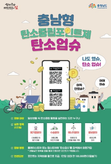‘탄소업슈’는 충청남도 전역에서 탄소중립 실현을 위해 추진 중인 사업으로, ▲폐기물 ▲수송 ▲에너지 ▲홍보 등 4개 분야 17개 항목으로 운영된다.