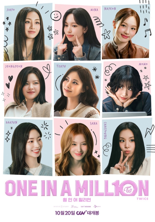 10년의 순간을 담은 진심 어린 이야기. 트와이스의 목소리로 한층 더 가까이, 한층 더 깊게 만나는 특별한 시간을 다룬 <원 인 어 밀리언(ONE IN A MILL10N)>이 10월 20일 CGV 단독 개봉을 시작으로 글로벌 극장 개봉을 앞두고 원스(ONCE)의 마음을 더욱 설레게 할 스페셜 포스터와 메인 예고편을 공개했다.