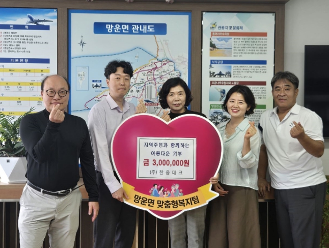 김지윤 망운면장은 “지역사회의 어려운 이웃들을 위해 따뜻한 마음을 전해주신 ㈜한웅테크에 깊이 감사드린다”며, “기탁된 성금은 도움이 절실히 필요한 가정에 소중히 사용될 수 있도록 세심히 살피겠다”고 전했다.