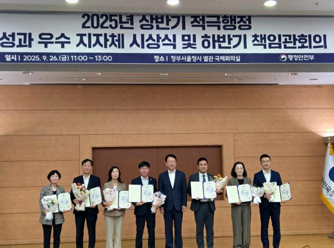 특히 2023년 실적 종합평가, 2024년 상반기 성과점검, 2024년 실적 종합평가, 2025년 상반기 성과점검까지 4회 연속 행정안전부 장관상을 수상하며 성과로 입증된 적극행정 모범 지자체로서의 위상을 확고히 했다.