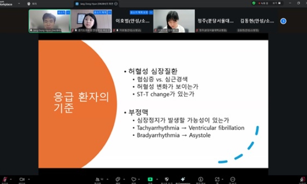 Zoom 비대면 플랫폼을 통해 분당소방서, 여주소방서, 안성소방서, 송탄소방서 구급대원이 동시에 참여할 수 있도록 교육이 운영됐다. 이번 교육은 ▲다수사상자사고(MCI)의 개념과 구급대원이 반드시 숙지해야 할 중증도 분류(Triage) 원칙 및 대응 절차 ▲원리와 함께 이해하는 기초 심전도 ▲응급환자의 기준(허혈성 심장질환, 부정맥) 등을 중심으로 진행됐으며, 특히 구급대원이 실제 현장에서 적용할 수 있는 이론적 기준과 판단 근거를 심화 학습하는 데 초점을 맞추었다.