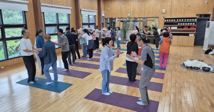 참가자들은 숲길 걷기, 싱잉볼 명상, 숲속 난타, 건강 레크리에이션, 편백 족욕 등 다양한 활동에 참여하며 자연 속에서 치유의 시간을 보냈다.