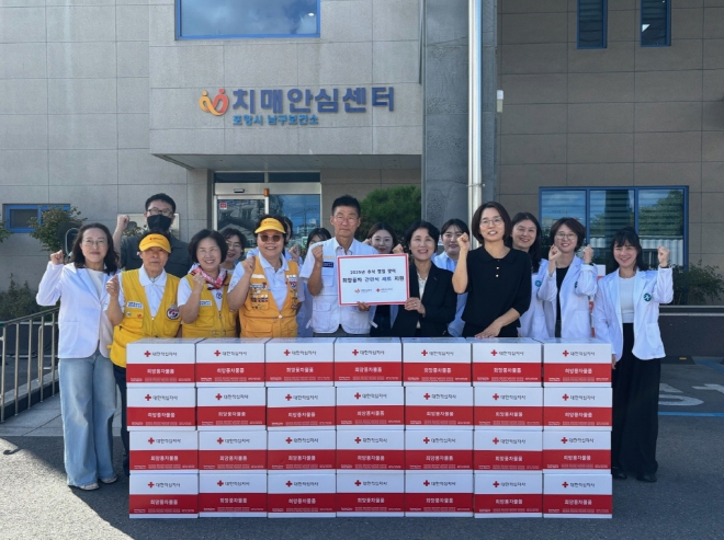 ![]() 포항시 남구보건소 치매안심센터는 29일 대한적십자사 경상북도지사 동부봉사관으로부터 후원받은 ‘희망풍차’ 기탁 물품을 치매 어르신 가정에 전달했다. |