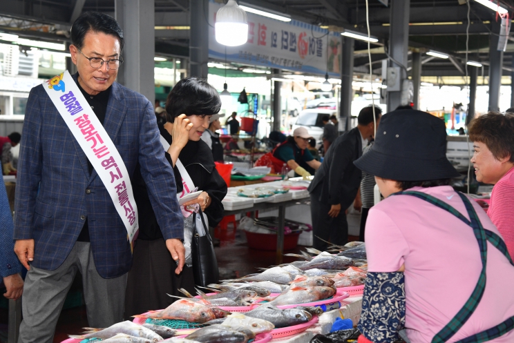 이날 이순걸 군수와 관계 공무원들은 추석 준비에 필요한 제수용품과 농축산물, 지역먹거리를 구입하고, 전통시장 이용 홍보 캠페인을 함께 펼쳤다.