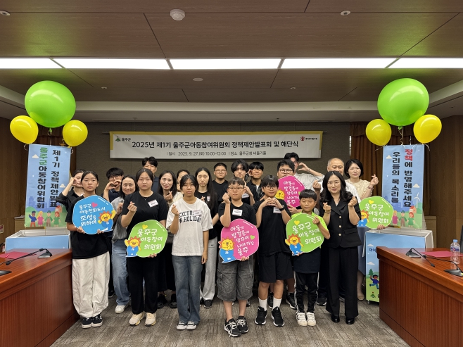 ![]() 제1기 울주군아동참여위원회가 27일 울주군청 은행나무홀에서 지난 1년 간의 활동을 마무리하는 해단식을 가졌다. |